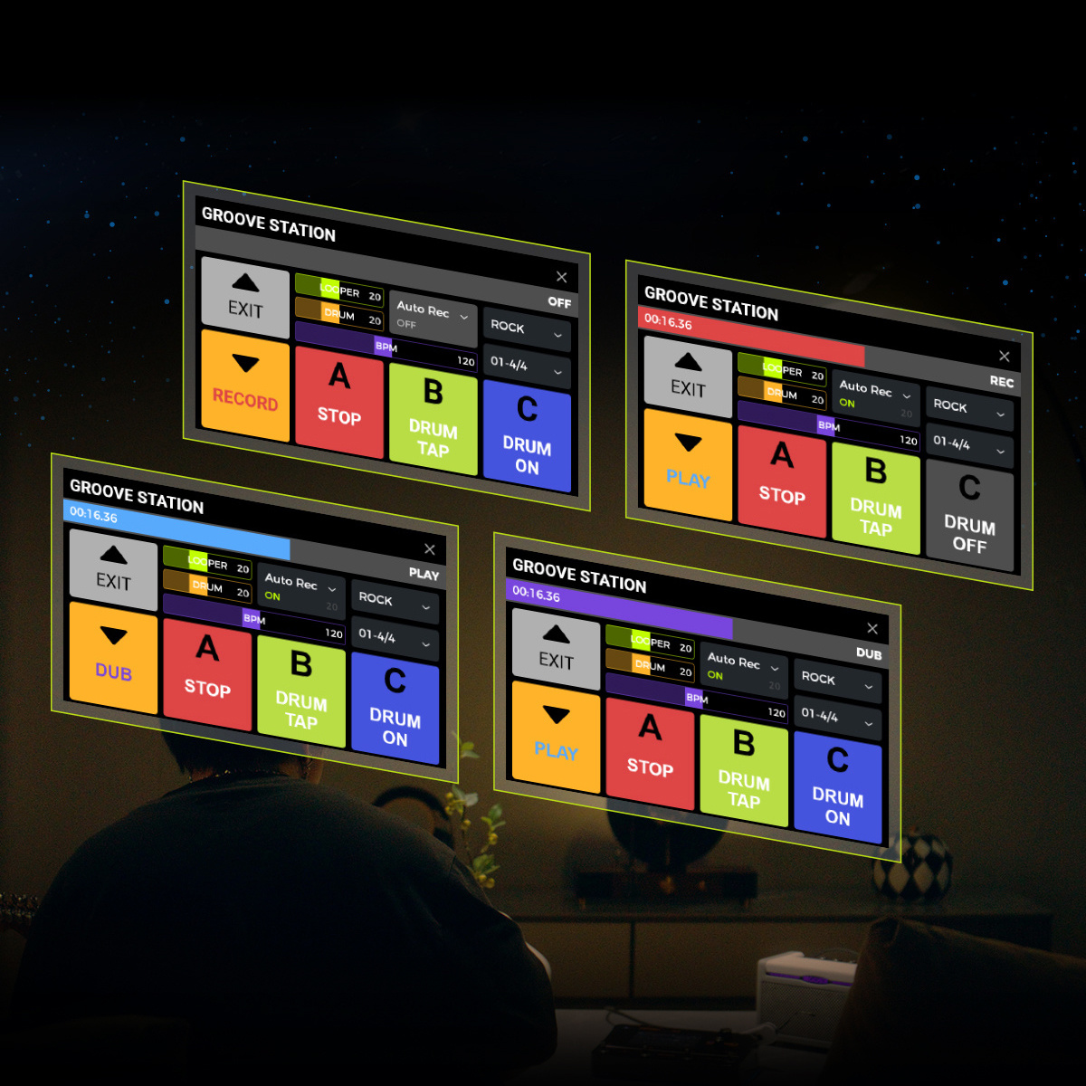 Groove Station features a 56-kit drum machine and a 480-second looper with unlimited overdubs and auto-sync.